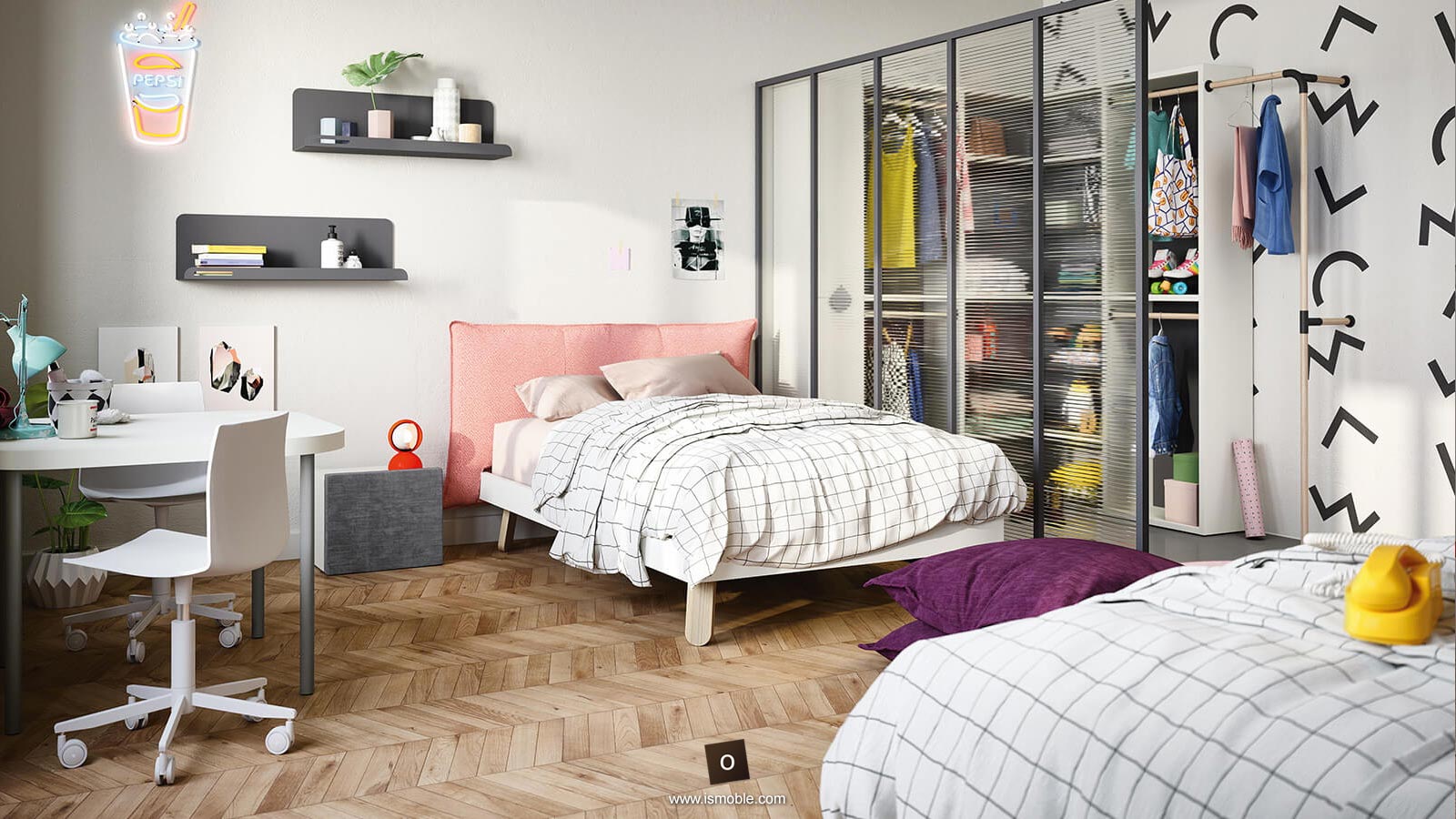 El catàleg Teens representa habitacions juvenils, on trobarem composicions més personals amb llits, taules i armaris de disseny més adult. Habitacions amb armaris i zones d’estudi amplies de colors menys vius.