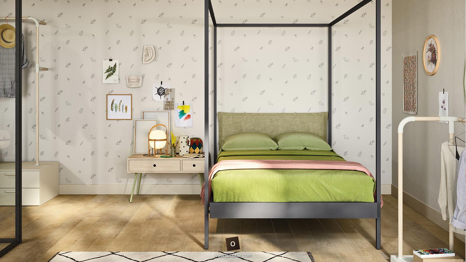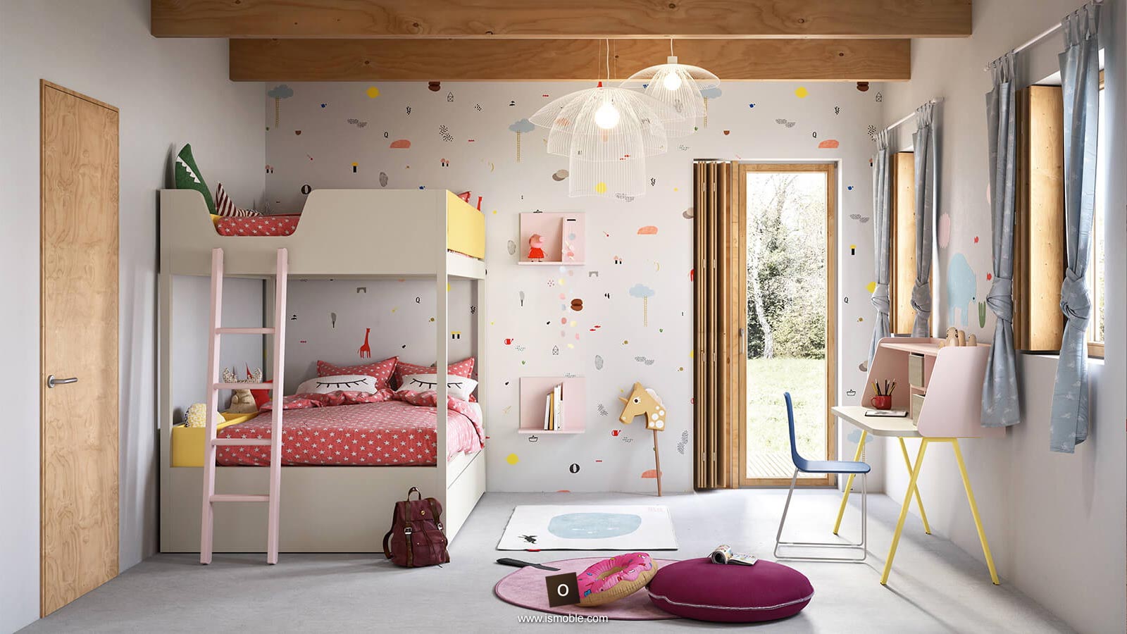El catàleg Kids representa habitacions infantils, on trobarem composicions romàntiques amb llits flotants amb peus de fusta i capçals o llits amb dosser metàl·lic i cortinetes, acompanyats d’escriptoris amb tocador i mirall, pensat per habitacions més amplies.